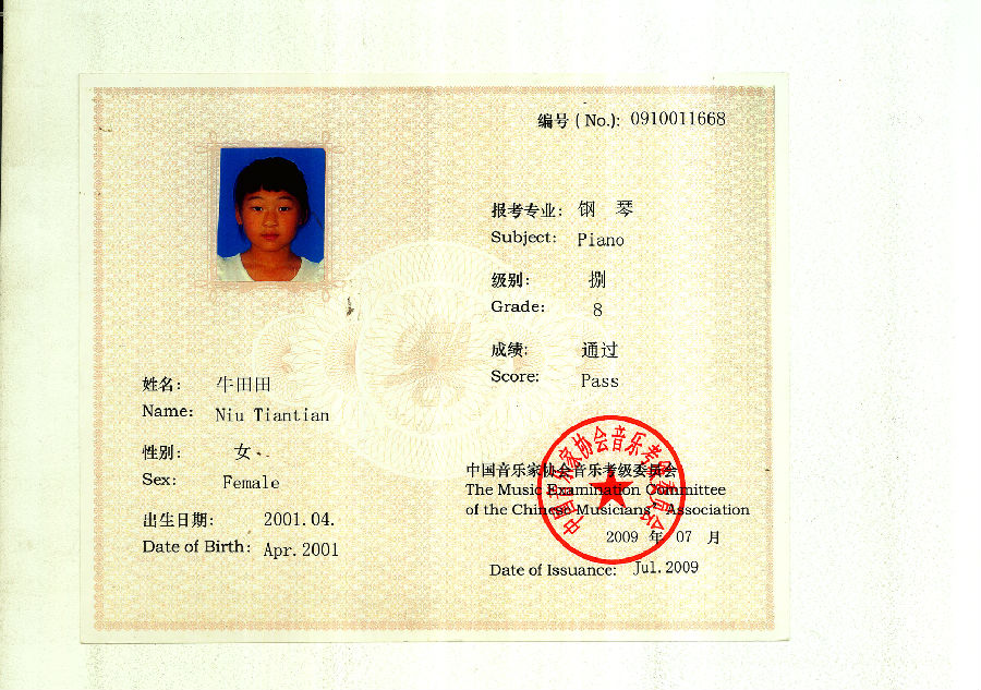 考试证书